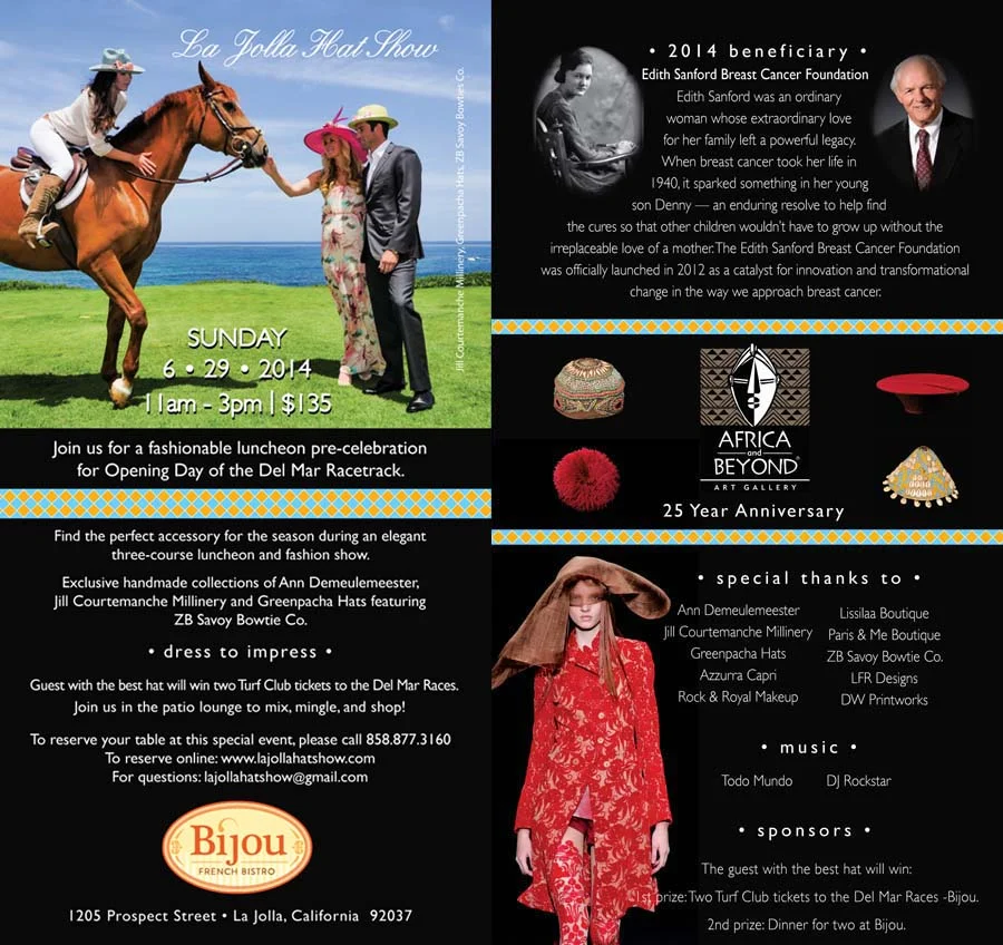 To reserve tickets and for further information, please visit www.lajollahatshow.com or call 858-877-3160.