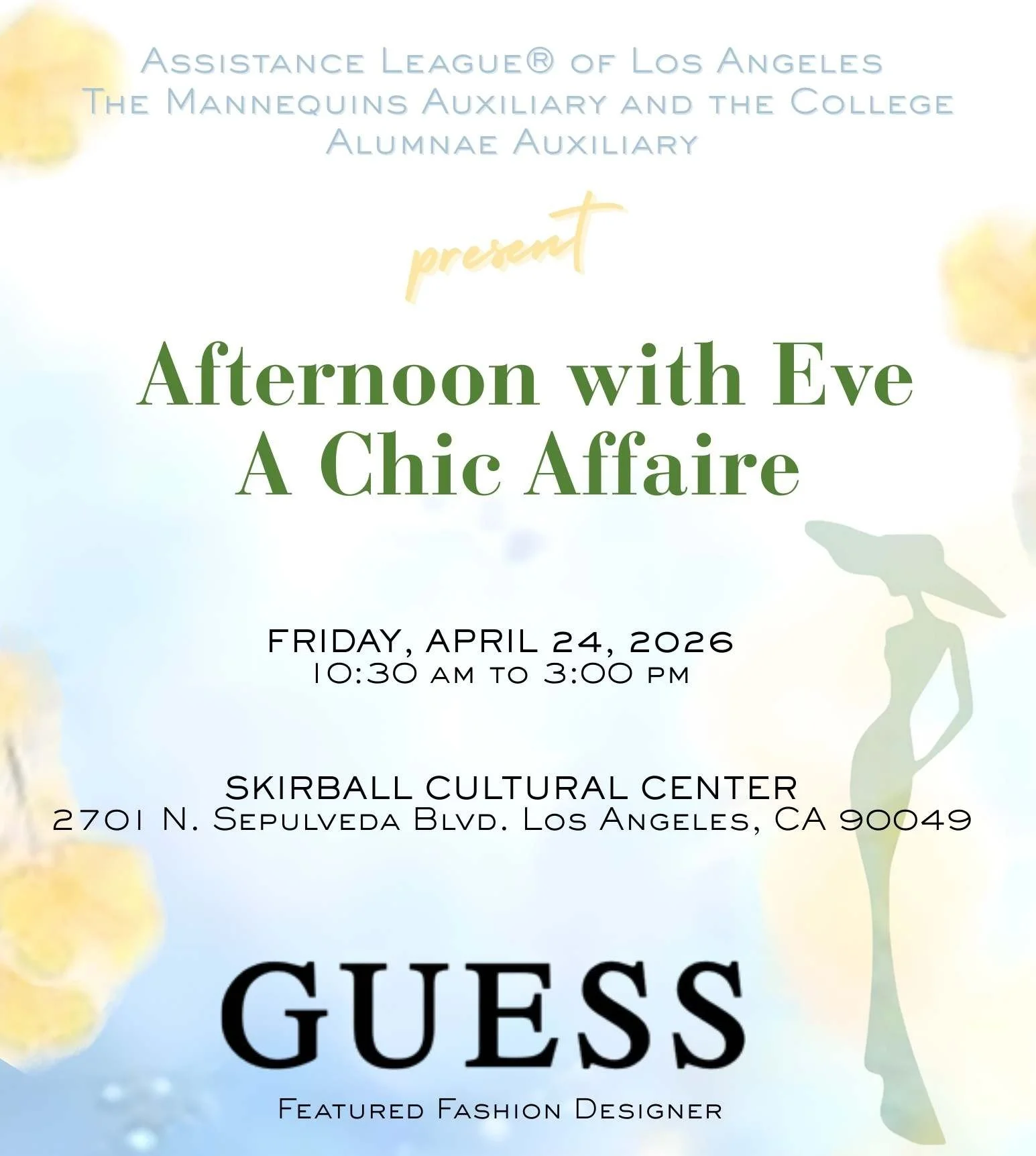We are excited to be included as a luxury vendor for this year's Afternoon with Eve - A Chic Affaire luncheon benefiting The Assistance League of Los Angeles. The event will take place on Friday, April 24th at the Skirball Cultural Center in Los Angeles, CA.